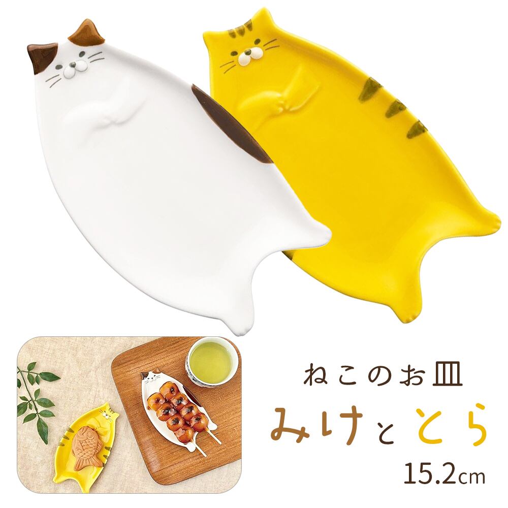 【ねこざら みけととら 15.2cm 小皿 デコレ DECOLE】